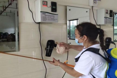保洁员对公共区域进行消杀