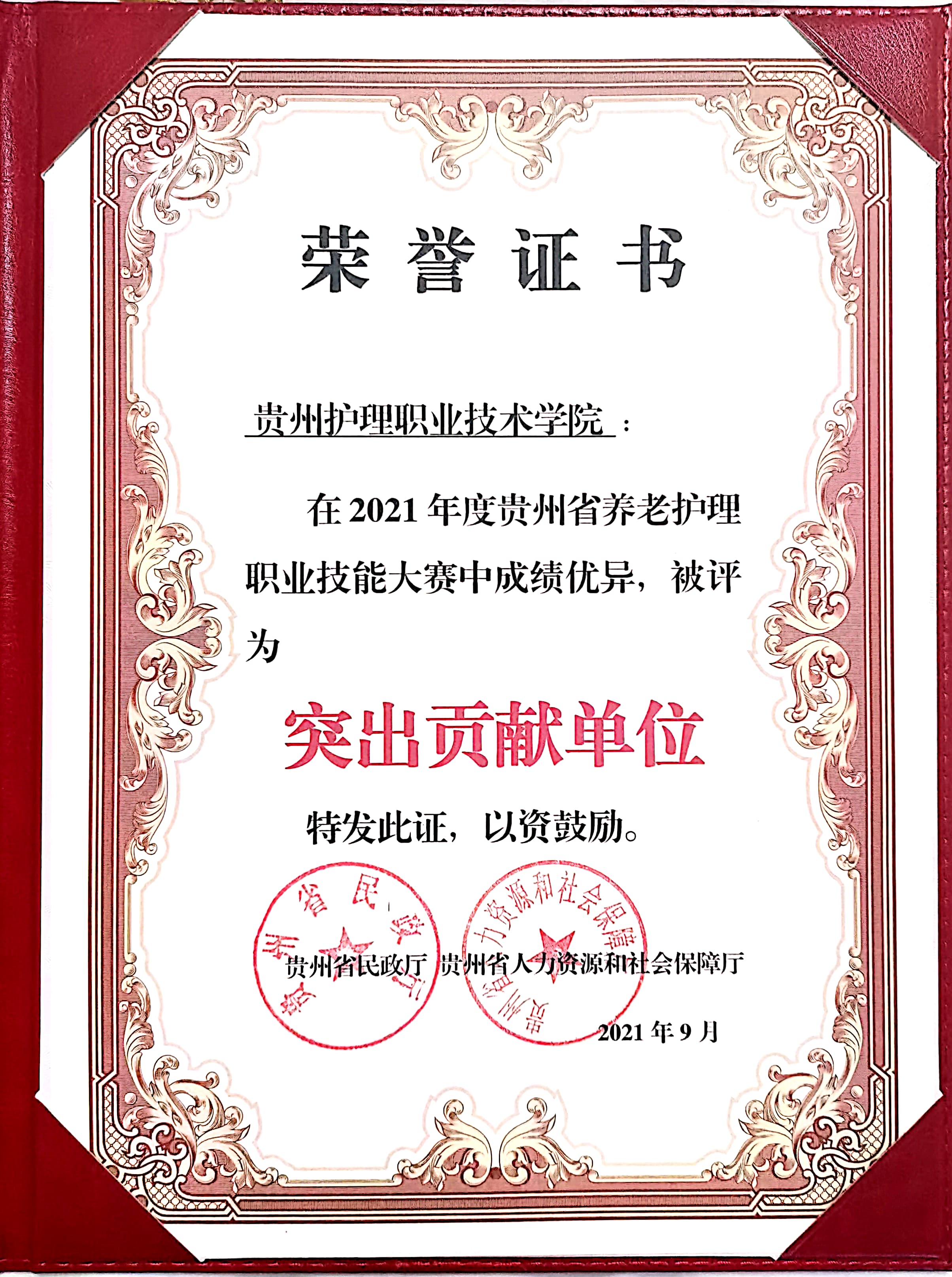 我院被评为贵州省养老护理职业技能大赛突出贡献单位