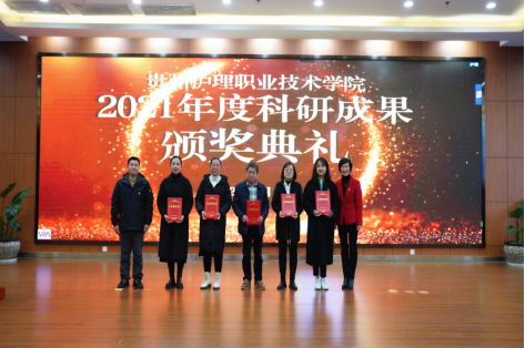 会议最后,党委领导班子为获得2021年度教育教学成果、科研成果及优秀教职工进行颁奖。