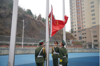 在庄严的升国旗仪式上,国旗护卫队昂首阔步出旗并升旗,伴随着威严的国歌,五星红旗缓缓升起,全体人员向国旗行注目礼。窗体底端