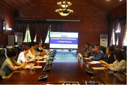 4月28日,贵州应用技术职业学院院长郑晓明一行6人到我院参观交流,我院党委书记黄亚励,党委委员、副院长徐晓筑,党委委员、副院长潘忠伦以及相关部门负责人陪同。