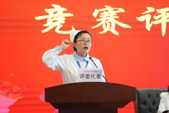 魏俊作讲话,她提到,作为广大职工的重要组成部分,我省广大护理人员救死扶伤、治病救人,始终把保卫人民健康的职责扛在肩上,把勇于担当、甘于奉献的使命牢记在心,在平凡的岗位上演绎着不平凡的故事。她希望广大护理人员以本次比赛为新的起点,将服务技能做精、基础护理做实、专科护理做深,为广大人民群众提供更加优质、高效、安全的护理服务,为奋力谱写多彩贵州现代化建设新篇章作出新的更大贡献,以实际行动和优异的成绩迎接党的二十大胜利召开。