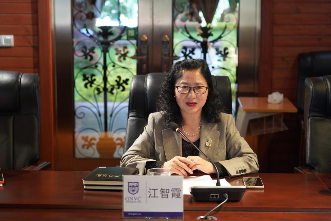 首先,双方在学院天使阁会议室进行了座谈交流,会议由徐晓筑主持。座谈会上,江智霞代表学院对黄文霞常务副校长一行的到来表示欢迎,随后介绍了我院的基本情况、专业教学和人才培养情况。黄文霞介绍了贵州工贸职业学院的建设历史、开设专业、人才培养方案等,双方与会人员就专业申报、实训室建设、内涵建设等方面进行了交流。