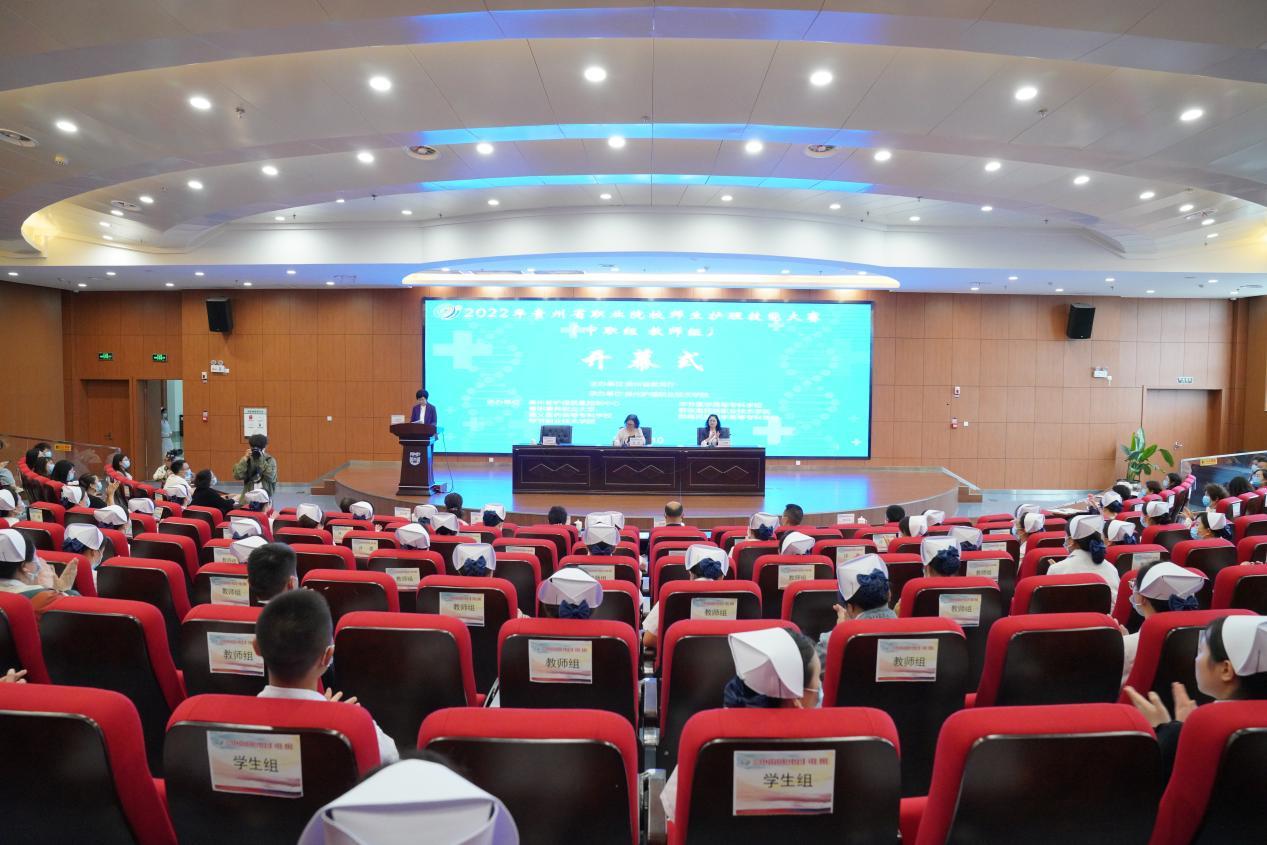 绿树浓荫值盛夏,金海雪山聚白衣,6月10日,2022年贵州省职业院校师生护理技能大赛(中职组、教师组)开幕式在我院金海校区学术交流中心举行。省教育厅职业教育与成人教育处一级调研员胡晓,我院党委副书记、院长江智霞及其他院领导出席开幕式。各参赛院校代表共41支参赛代表队及我院各系(部、中心)、处(临时)负责人参加开幕式,开幕式由我院党委委员、副院长柏晓玲主持。