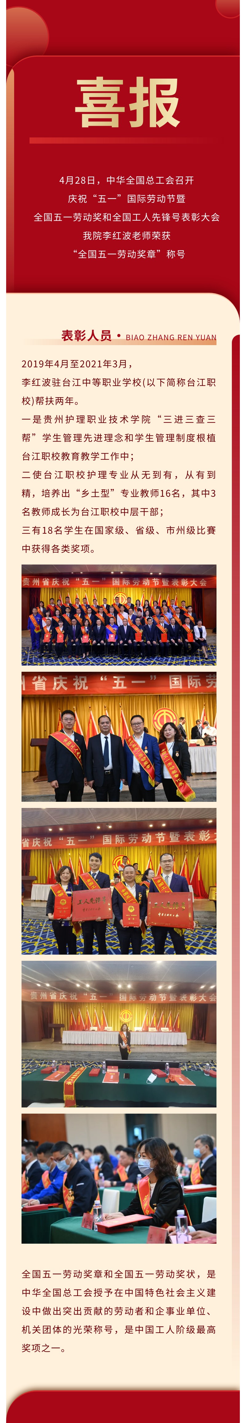 喜报|我院教师李红波荣获“全国五一劳动奖章”称号