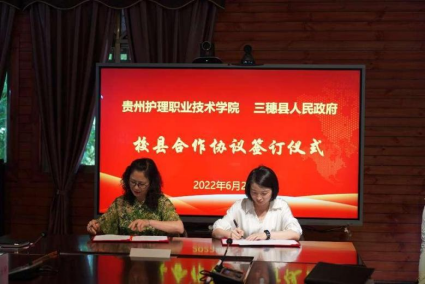 为促进医教协同发展,全面提升人才培养质量,进一步打造有特色、高水平、高质量卫生健康职业院校,6月24日,我院与三穗县人民政府校县合作协议签订仪式在金海校区天使阁会议室隆重举行。三穗县委书记刘明波携县委常委、县人民政府常务副县长张登利以及三穗县教育与科技局、卫健局、人社局、人民医院、中医院、妇幼保健院、三穗驻贵阳联络处相关工作人员,我院党委书记黄亚励,党委副书记、院长江智霞,党委委员、副院长徐晓筑、潘忠伦,党委委员、纪委书记杨伯兵及相关部门负责人共同参加校县合作协议签订仪式。党委副书记、院长江智霞主持会议。