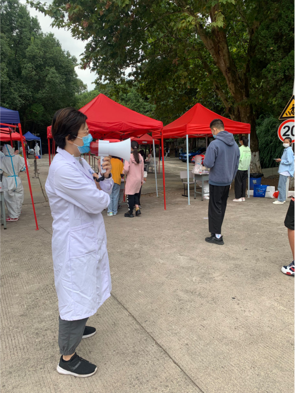 郁芮老师在核酸采集现场组织学生有序进行核酸采集