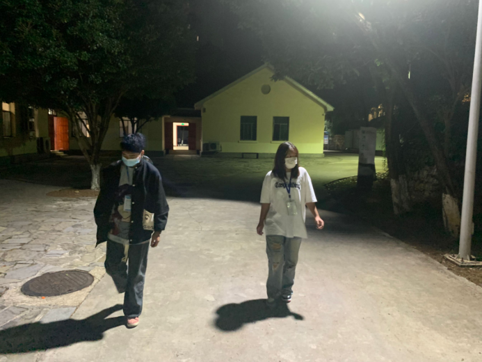 坚守在金海校区的辅导员陈媛老师和学生工作处郁芮老师,始终站在保护学生健康安全的第一线,在两校区的核酸采集现场,她们有序组织;在深夜的学生寝室,她们贴心问候。