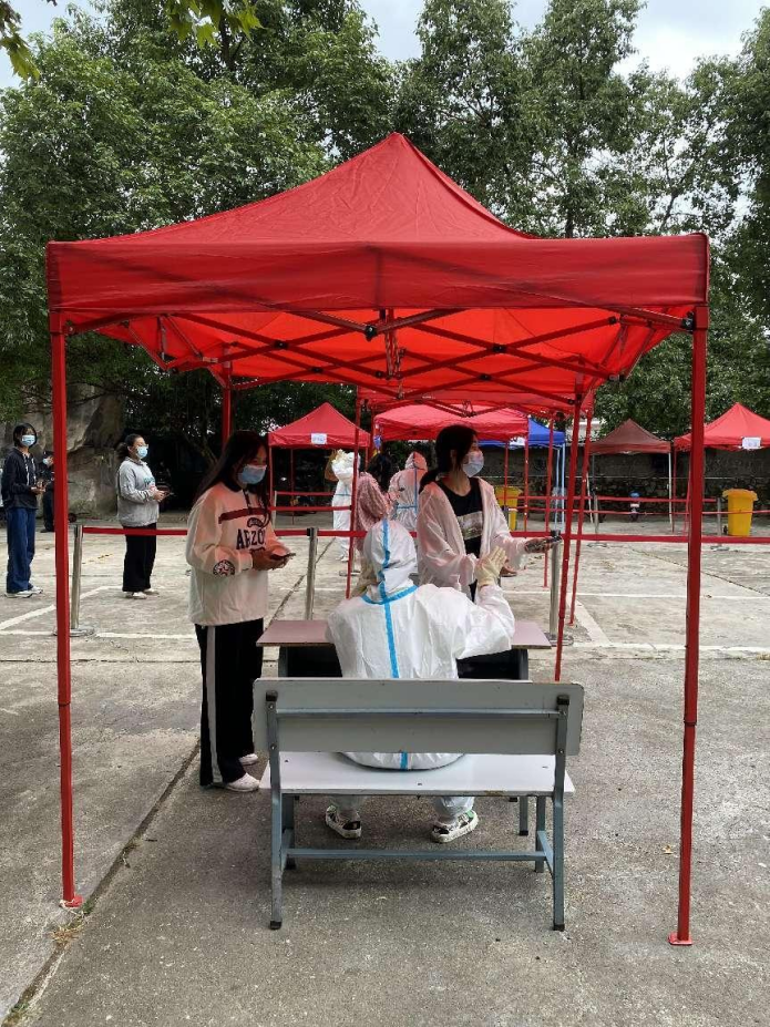 他们是抗疫一线的“大白”,协助老师有序组织同学们进行核酸采集……