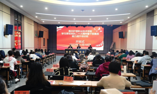 为深入学习贯彻习近平新时代中国特色社会主义思想,认真学习贯彻党的二十大精神及习近平总书记关于党的建设、教育工作、意识形态等领域的重要指示批示精神,11月18日至20日,我院以“强素质 提能力 促发展”为主题组织开展学习贯彻党的二十大精神暨干部素质能力提升培训班。此次培训班由贵州省委党校统筹安排在毕节市委党校金沙县后山现场教学点举办,培训对象为学院各系(部、中心)、处(临时)负责人,各科室(临时)负责人,各党总支支委成员及专职组织员,各党支部支委成员,各教研室主任、副主任共计87人。