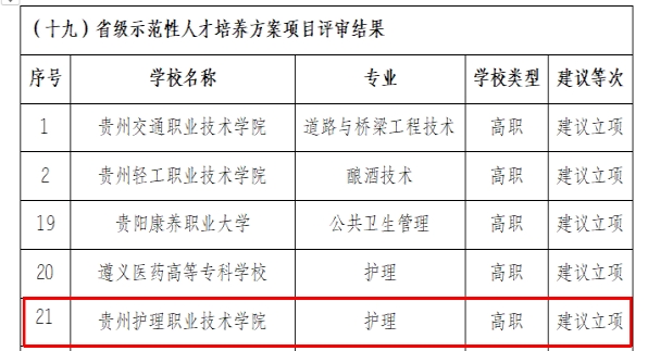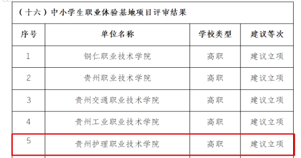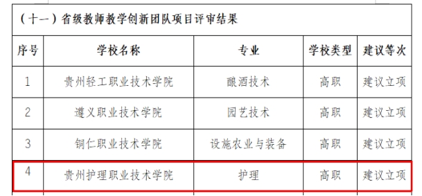 行动计划项目评审结果名单的通知》(黔教函〔2022〕108号)文件已正式下发。经过前期评审和公示,我院高职项目组省级教师教学创新团队(护理专业)、中小学生职业体验基地项目和高职项目组省级示范性人才培养方案(护理专业),共3个项目获得建议立项。