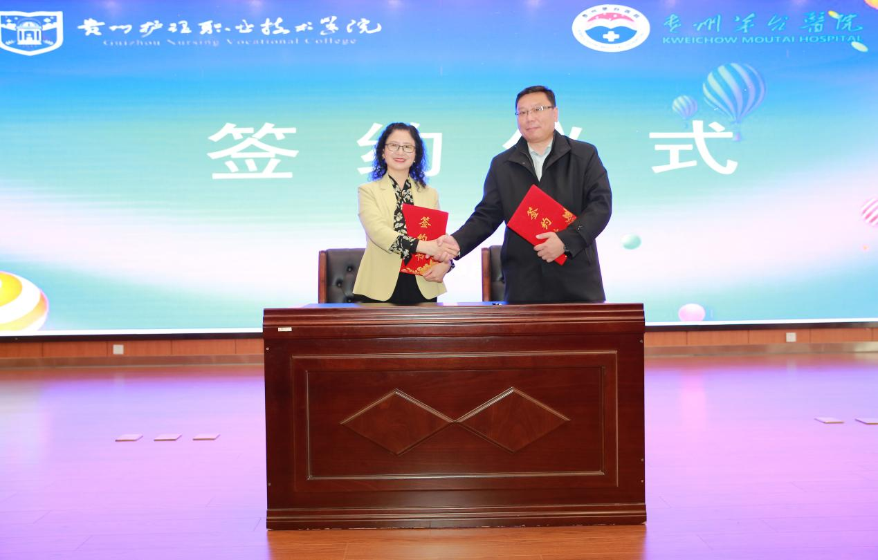 开幕式上还举行了“校企合作”签约仪式,江智霞代表学院与贵州茅台医院院长尹朝辉签署校企合作协议。
