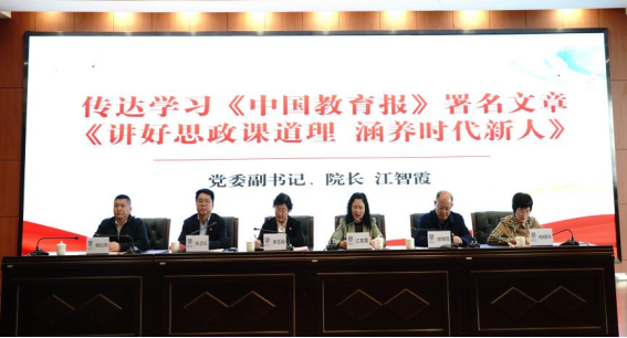 会议伊始,党委副书记、院长江智霞传达了《中国教育报》署名文章《讲好思政课道理 涵养时代新人》。