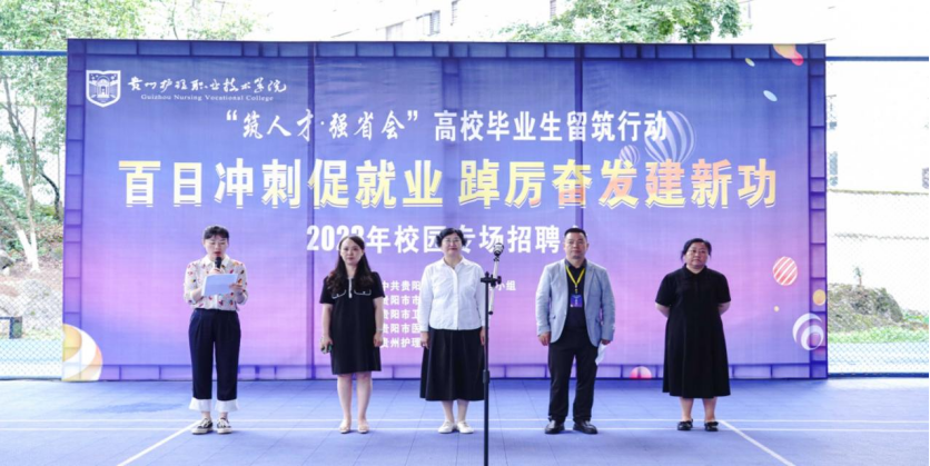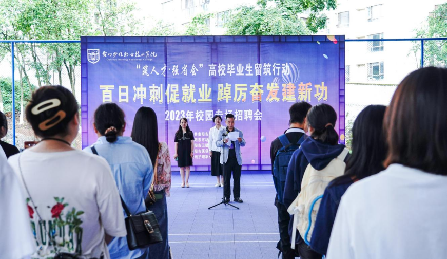 为深入贯彻党的二十大精神,落实党中央、国务院和省委、省政府“稳就业”“保就业”决策部署,推进实施2023届毕业生就业“百日冲刺”行动,抢抓毕业生离校前的就业关键节点,搭建毕业生与用人单位的便捷沟通渠道,7月4日,2023届毕业生校园招聘会在我院花溪校区举行,学院党委书记黄亚励出席招聘会开幕式,党委委员、副院长潘忠伦致欢迎词,招生就业处负责人杨飏主持开幕式。