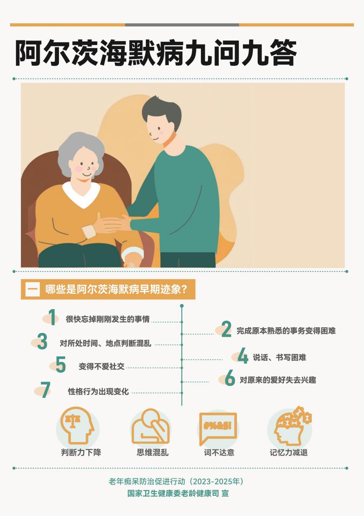 9月21日是第30个“世界阿尔茨海默病日”,今年阿尔茨海默病日的主题是“立防立治,无问早晚”,让我们共同携手,聚焦早筛早诊,延缓疾病的发生发展,共享幸福健康的老年生活。