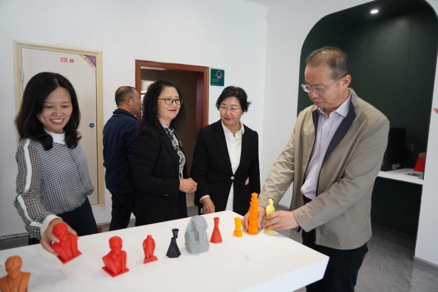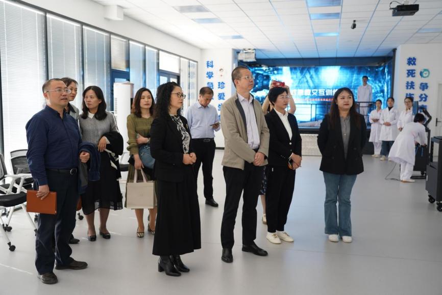 参观调研中,时玉昌一行边走边看,边听边了解,先后到急危重症虚拟仿真产教融合实训基地、科教协调创新中心进行了解,对虚拟仿真开发、学生创新创业进行交流,并给予了充分肯定和高度评价。