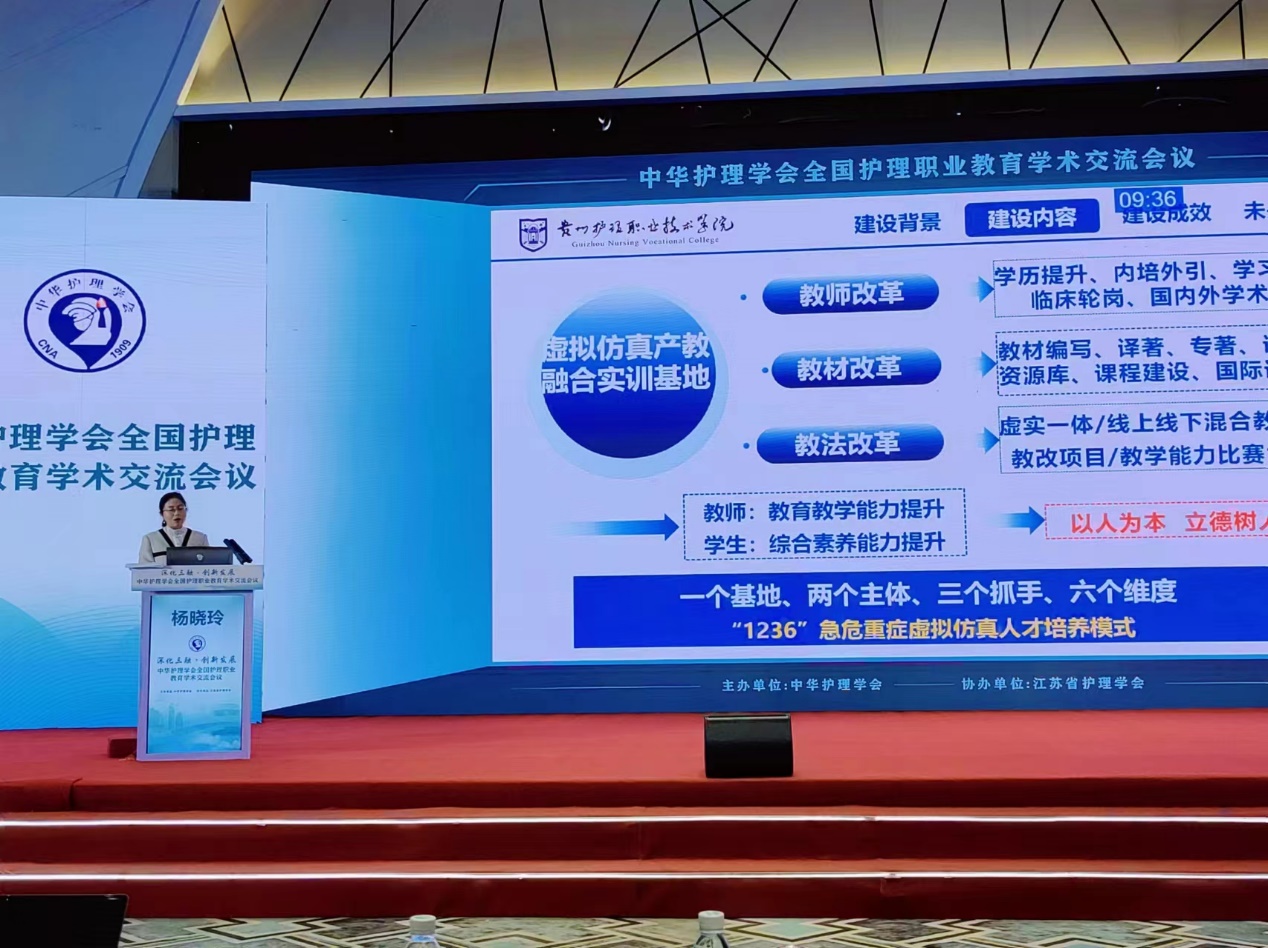 10月22日,护理系副主任杨晓玲在“三教改革”分论坛上做了题为《“1236”急危重症产教融合实训基地建设与应用探索》的报告,从建设背景、建设内容、建设成效、努力方向四个方面进行了详细阐述。