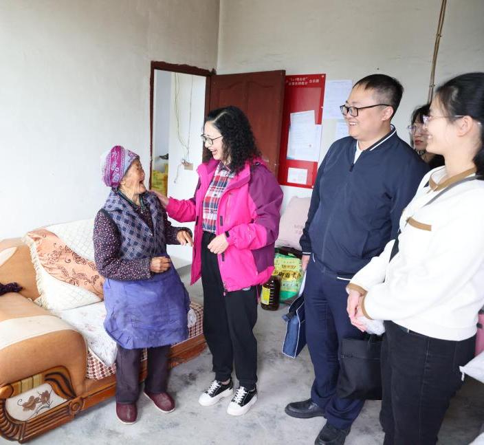 在哪嗙社区,江智霞看望慰问了联系户,详细询问他们的身体健康和生产生活等情况,并送去了大米、食用油及过冬被褥等慰问物资。江智霞一行与哪嗙社区村支两委召开座谈会,双方重点围绕健康帮扶、教育帮扶及产业发展等相关话题展开交流。会后,在学院派驻哪嗙社区第一书记孟晓彬的带领下,江智霞一行实地调研了哪嗙社区鱼苗培育基地。