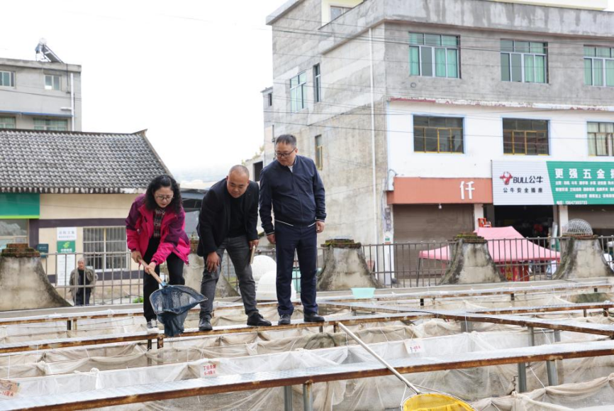 江智霞一行调研哪嗙社区鱼苗培育基地