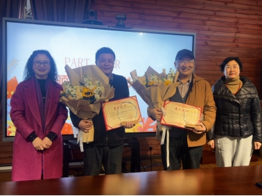 江智霞表达了对两位教师为学院建设和发展的感谢。祝福两位退休教师身体健康、阖家幸福。