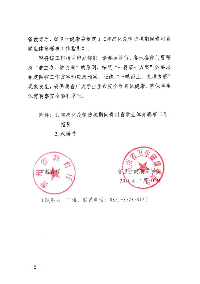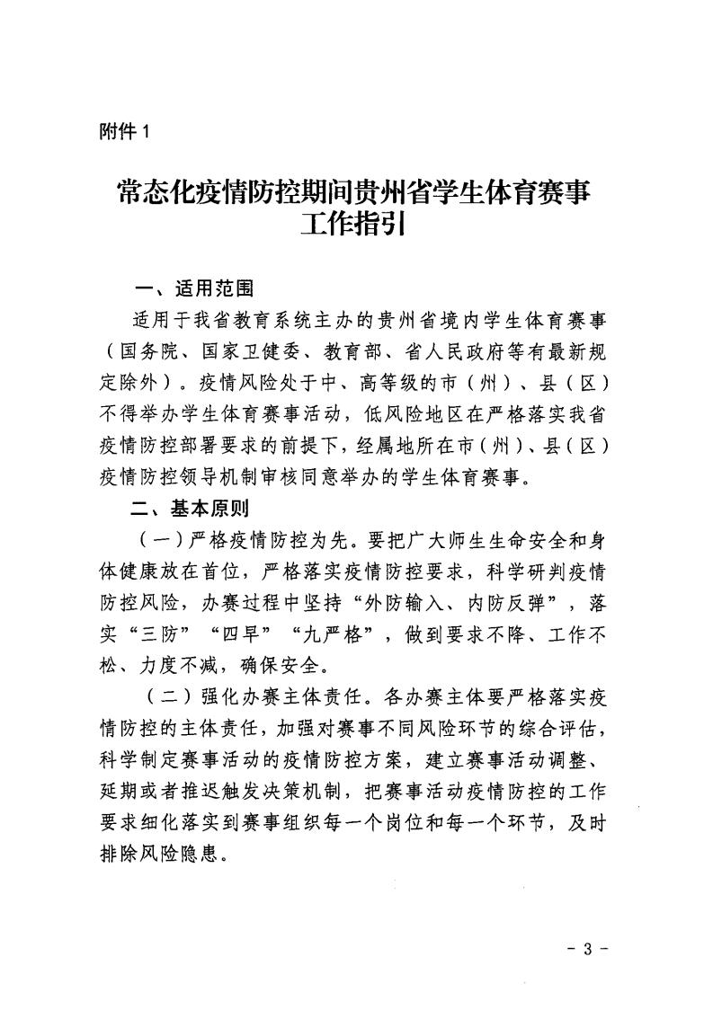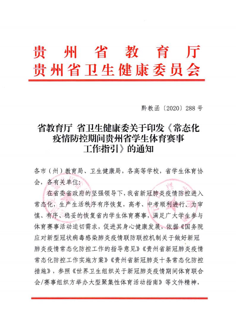 省教育厅省卫生健康委关于印发《常态化疫情防控期间贵州省学生体育赛事工作指引》的通知