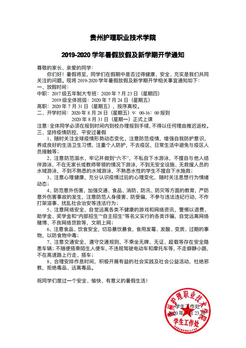 伟德国际19462019-2020学年暑假放假及新学期开学通知