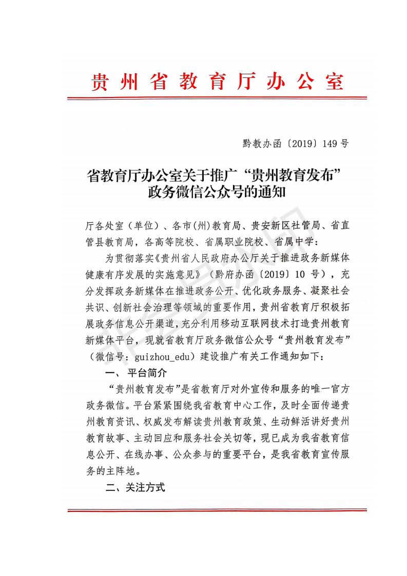 省教育厅办公室关于推广“贵州教育发布”政务微信公众号的通知