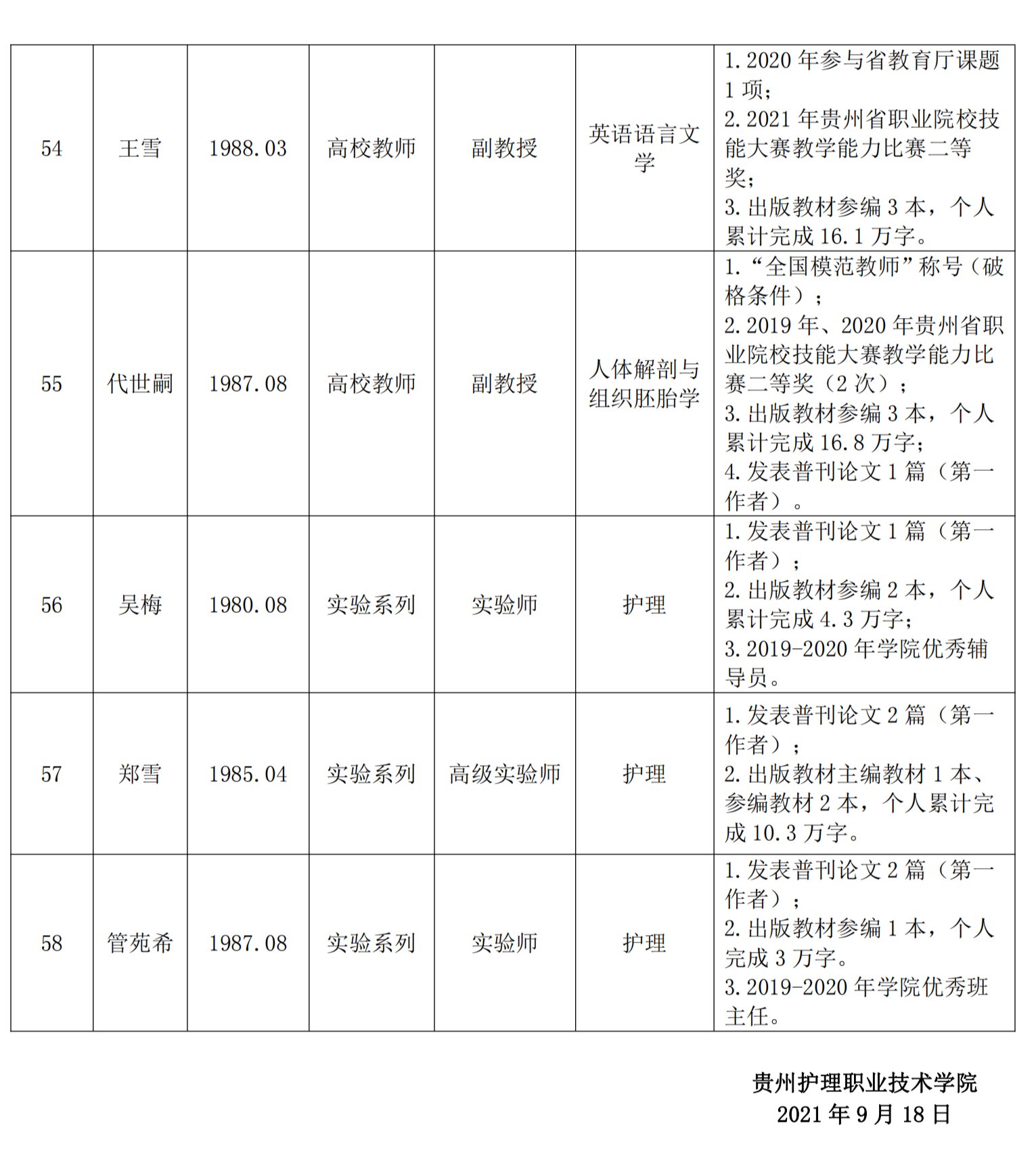 2021 年度伟德国际1946教师系列及实验系列中级、高级专 业技术职务任职资格申报人员公示