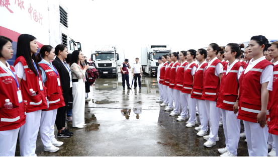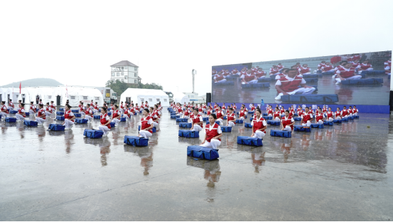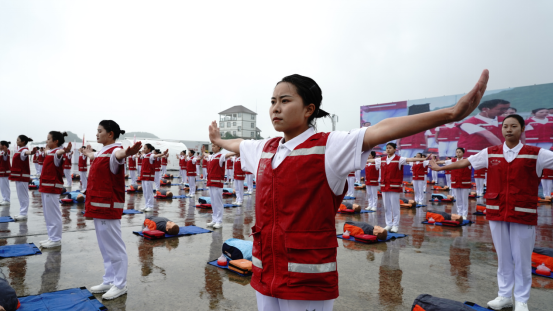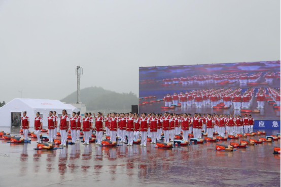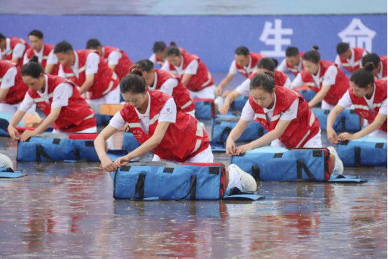 随着洪亮的口号响起,我院100名学生开启今日活动第一场技能展演,现场虽天降暴雨,但所有学生临危不乱,个个神采奕奕、精神饱满,有条不紊地进行演练。