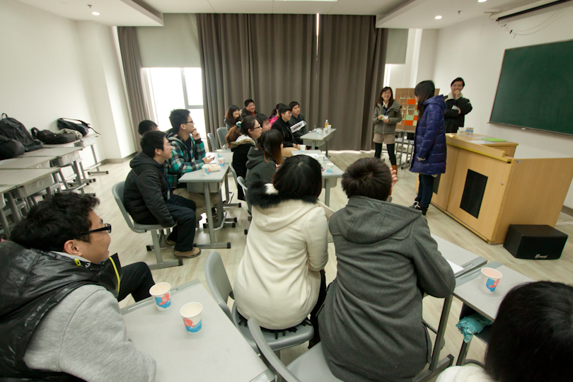 3月15日,我院08级营销方向全体学生在教学B楼402上了一堂别开生面的公共关系课。同学们分为三组,学院何瑛老师、郑晶晶、刘向老师应邀为活动嘉宾,嘉宾教师作为三队队长,参与“无所不猜”游戏。游戏表达形式包括绘画、动作表演、yes or no猜猜看、copy不走样等,所猜事物涉及本班同学、日常用品和成语等,考验了大家的想象力与理解能力,促进了三位老师与同学们之间的了解,良好的达到了公共关系课的教学目的,加深了师生友谊。