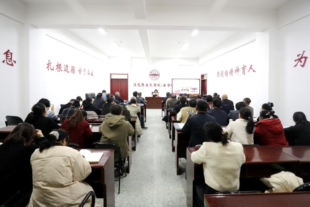 按照学校党委统一部署,11月25日下午,党委书记张爱萍深入马克思主义学院(法学院)宣讲党的二十届四中全会精神。