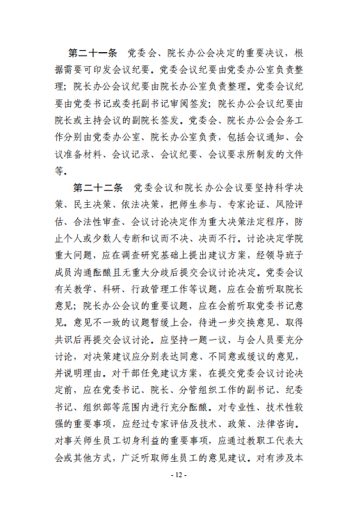 《伟德国际1946关于坚持和完善党委领导下的院长负责制实施办法(修订版)》