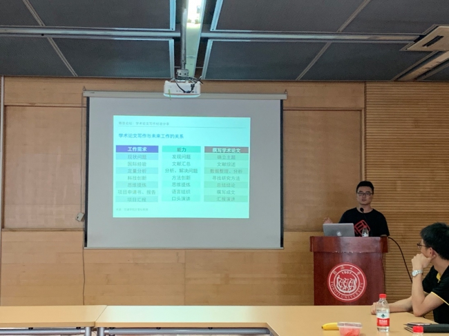 本次论坛的内容主要围绕科研过程中的检索、分析、写作、投稿、修稿五个方面。首先汪磊博士以“学术论文写作经验分享——以汽车分时租赁研究为例”,讲述了如何利用Web of Science寻找研究领域的科学论文、获取研究前沿;在选题分析中如何获取新的思路、创新研究;如何借助Web of Science快速准确检索锁定与课题相关的核心文献信息,全方位分析已有信息,把握课题发展方向和趋势,详细的为同学们分析了SCI文章写作、投稿以及修回每个过程中的注意事项。此外,汪磊博士还对英文论文撰写,修稿以及被拒稿等常见问题提出了自己独特的见解。