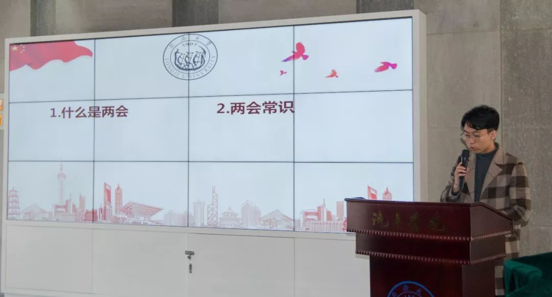 为丰富学习形式,本学期在正式学习开始之前,由两位党员代表结合时事政治分享学习感悟。本次是两位学生党员代表结合“学习强国”APP和“两会”内容分享自己的学习体会。