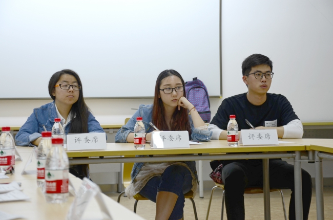 (图注)本科二支部对战16级专硕二支部,辩题为“对于韩国部署萨德系统,中方是否应该采取强硬制裁措施”,双方选手结合国际实情,深刻分析中国的处境,严格缜密地推导,捍卫己方的观点。最终本科二支部胜出。