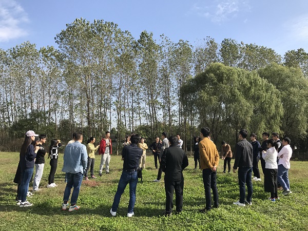 下午,同学们前往南湖公园开展素质拓展活动。同学们首先通过抽签组成完整的毛主席诗句完成了分组,将素拓成员分为4组,各个小组分别演唱了红歌,展现了小组的精神面貌并且活跃了气氛。在主持人的带领下,大家先进行了“逢X报数”和“蛙跳水”两个热场小游戏,随后,素质拓展活动的正式游戏环节开始。首先进行的是“七人八足”比赛,四支队伍在赛前充分磨合,在正式比赛中发挥了超强的实力,记录一再被打破,各个队伍充分展示了团结合作的拼搏精神和团队凝聚力,比赛的胜负已显得并不那么重要。之后的“南辕北辙”更将现场氛围推向高潮。游戏中,每两个人互为搭档,其中一人蒙上眼罩,另一人跟在其后确保安全,戴眼罩的同学需要凭借记忆和搭档的引导前往场地末端的党旗所在处。在游戏中,大家坚定地朝着党旗走去,象征着对党的坚定信念。
