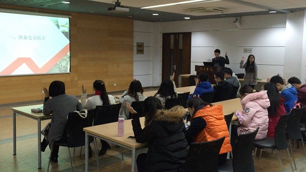 首先,支部讨论了预备党员朱翔、陈文杰同志的转正事宜。朱翔、陈文杰同志先后宣读了自己的转正申请,之后,到会同志就其在预备期内的表现发表意见,一致认为朱翔、陈文杰同志在学习上刻苦努力,在社会工作上积极参与班级、党支部活动,在科研上扎根课题组,展现了优异的综合能力,全票通过朱翔、陈文杰同志按期转为中共正式党员。