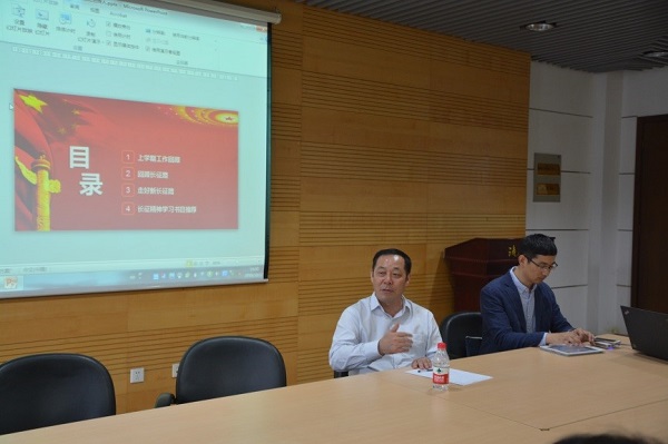 10月17日,汽车学院2015级学术型硕士一支部“学长征精神,做红色传人”组织生活会在汽车学院宁远馆A311会议室召开。校党委书记杨贤金作为该支部的结对校领导,来到同学们中间,与大家共同参加组织生活。