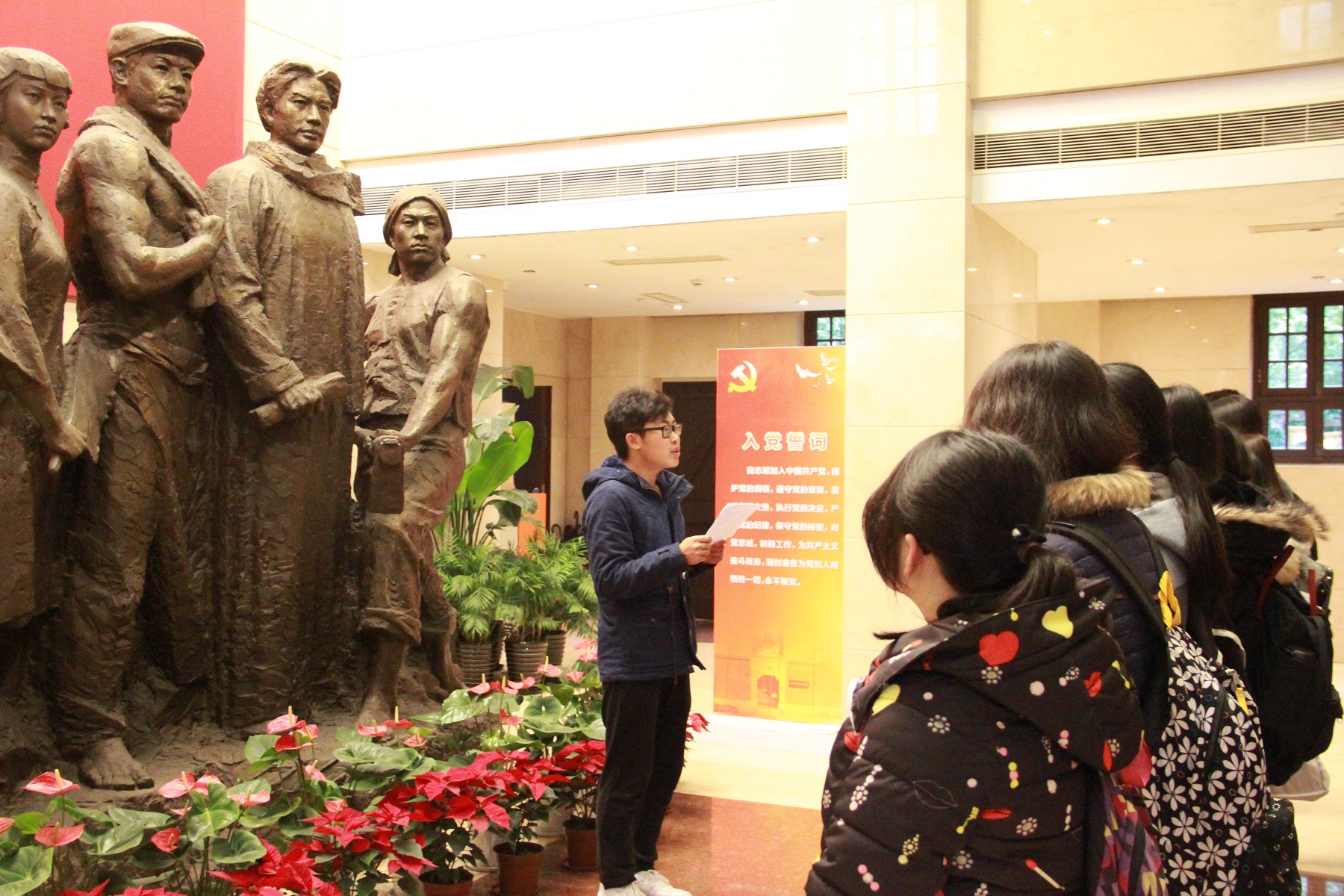 12月20日上午,汽车学院2015年度新发展党员入党宣誓仪在中共二大会址举行,参加本次宣誓活动的有32名2015年度新发展的预备党员以及新上岗支部书记、支委,学工办葛畅老师、曹卢老师参加了本次活动。