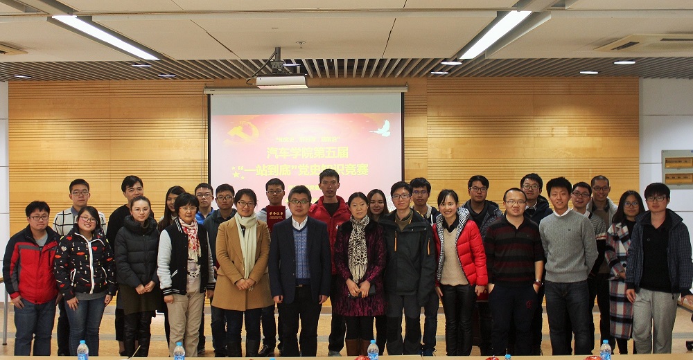 2015年12月22日,同济大学汽车学院“一站到底”党史知识竞赛半决赛、决赛在汽车学院宁远馆A311顺利举行!“一站到底”知识竞赛作为汽车学院一年一度全院学生党员的重要传统活动之一,迄今已连续举办五届。竞赛由汽车学院党委主办,汽车学院2012级本科支部承办。汽车学院党委副书记史成宇老师、电信学院学生党总支副书记王晶晶老师、机械与能源工程学院钱偲老师、汽车学院党委何伟君老师、汽车学院学工办副主任葛畅老师、郑晶晶老师、曹卢老师、张燕老师出席了活动。
