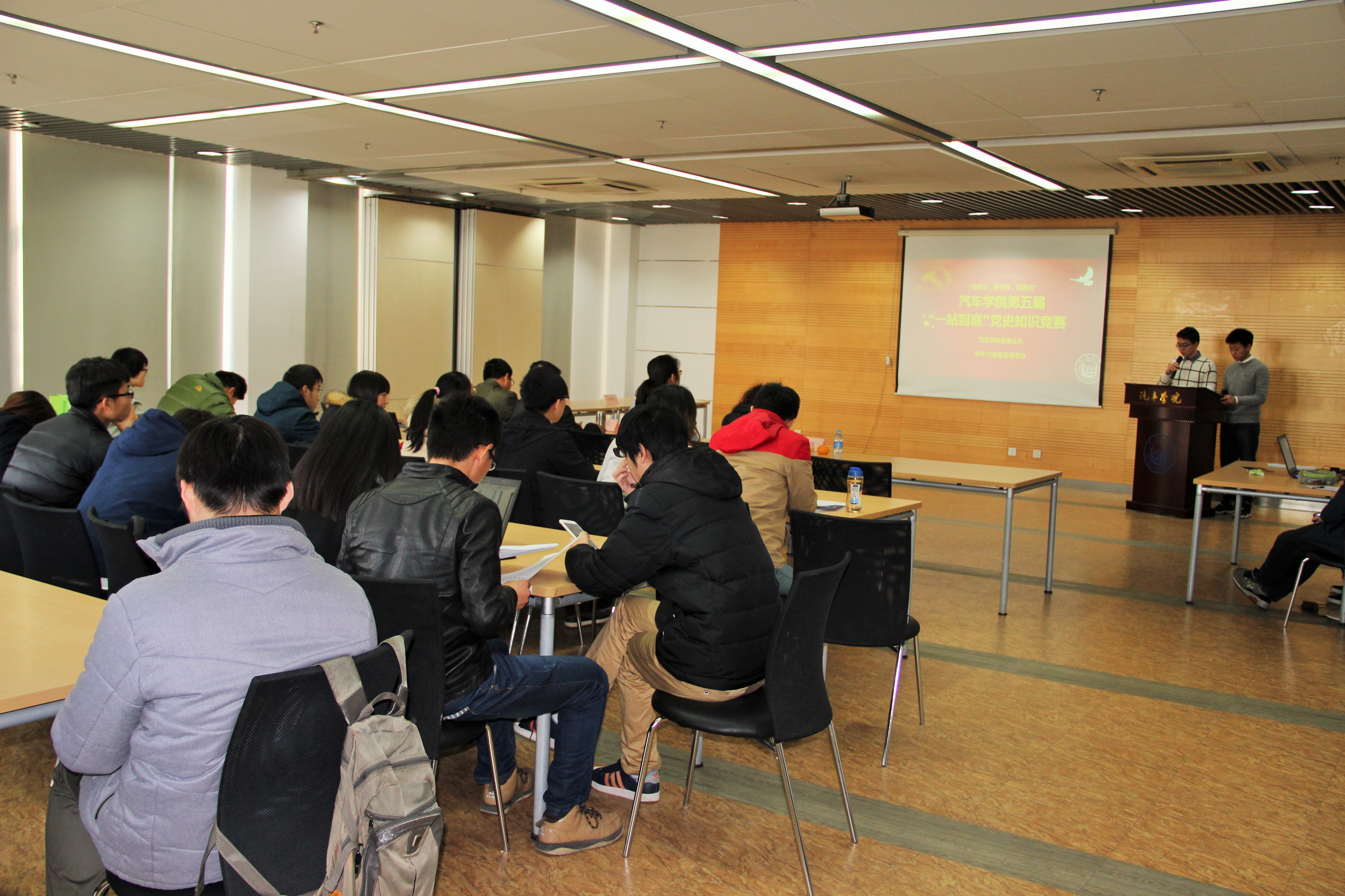 12月16日,同济大学汽车学院“一站到底”党史知识竞赛预赛在汽车学院A311顺利举行!“一站到底”知识竞赛作为汽车学院一年一度全院学生党员的重要传统活动之一,迄今已连续举办五届。本次竞赛由汽车学院党委主办,汽车学院2012级本科支部承办。汽车学院包括本科生、硕士生、博士生的16支学生支部代表队共同参与了这次竞赛,学工办徐夏平老师、葛畅老师、房亮老师、张燕老师出席了本次活动。