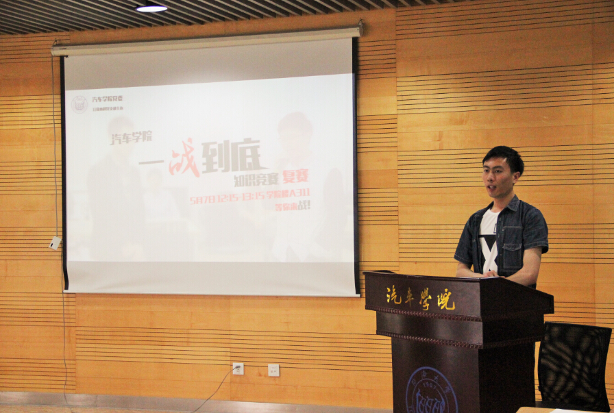 “一站到底”知识竞赛作为汽车学院每年一度全院学生支部的重要传统活动之一,迄今已连续举办四届。本次汽车学院“一站到底”党员知识竞赛在5月5日和5月7日分别举行了初赛和复赛。活动由汽车学院党委指导、2011级本科支部承办。汽车学院党委副书记史成宇老师、汽车学院学工办副主任葛畅老师、徐夏平老师、何伟君老师、曹卢老师、张燕老师与14支学生支部代表队共同参与了比赛。