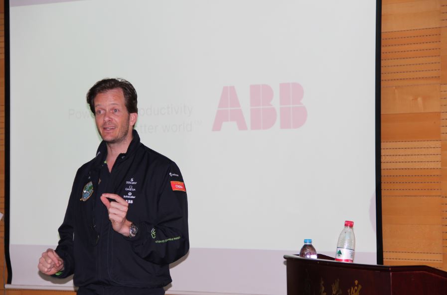 4月21日, ABB集团“阳光动力”战略项目负责人Michael Pietig 一行来到汽车学院,为大家带来了一场精彩纷呈的有关“ABB与太阳能飞机‘阳光动力2号’的环球飞行”讲座。汽车学院党委副书记史成宇老师出席讲座并致欢迎辞。