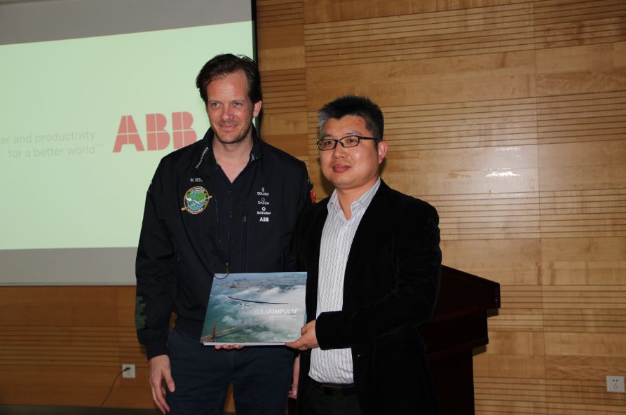 “阳光动力2号”在2015年3月开启人类历史上首次太阳能飞机环球飞行,它也是世界上唯一一架具有永续飞行能力的飞机。讲座中,Michael Pietig为同学们揭晓了“阳光动力”项目12年的成长历程,并认真、详细回答了同学们的提问。讲座过程学生积极参与,与主讲人Michael Pietig形成了良好的互动。讲座最后,Michael Pietig代表 ABB集团“阳光动力”项目向汽车学院赠送来自项目创始人贝特朗·皮卡尔先生亲笔签名的飞行画册。