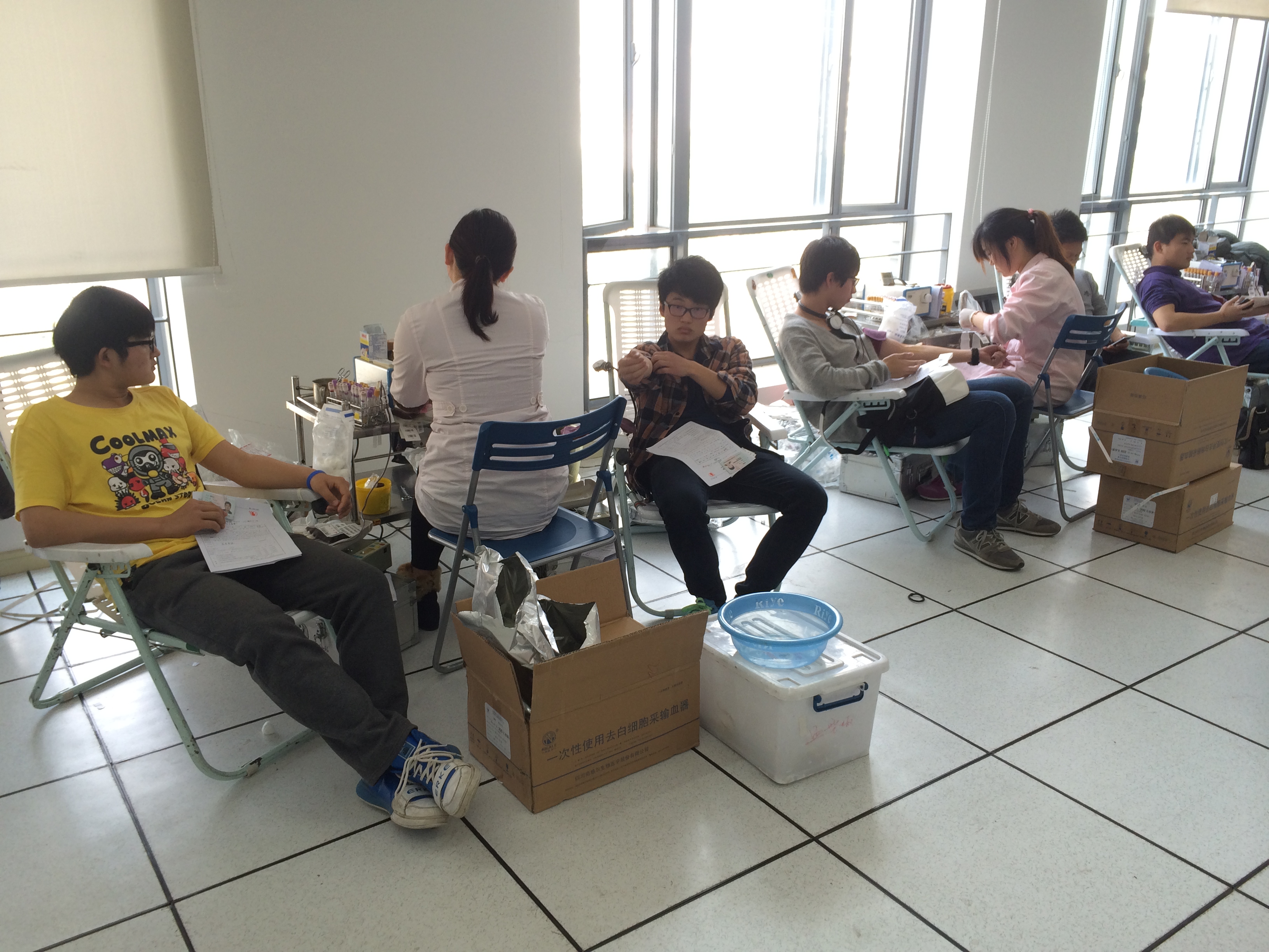“请不要紧张,就这样放松点……”,鲜红色的血液缓缓地流向血袋,透明的管子连接着手臂与血库,联系着我和你——2014年3月18日中午,嘉定校区F楼315教室,同济大学汽车学院2012级的同学们集体进行无偿献血。