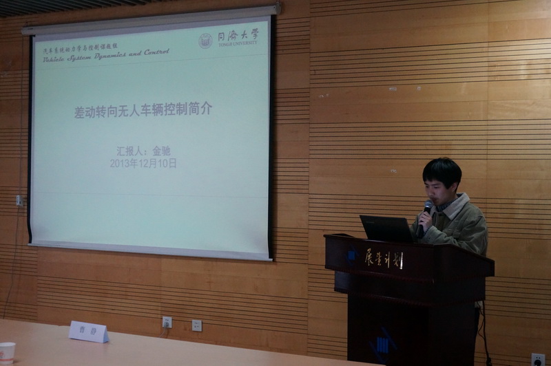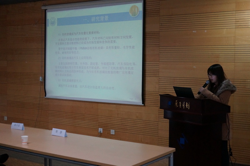论坛首先由曹静老师致开幕词,表达了对广大博士的良好祝愿,以及对博思论坛持续举办的希冀。接下来,金驰博士和邱娜博士分别对各自的题目做了细致入微、深入浅出的讲解。金驰博士的主讲题目为《差动转向无人车辆控制简介》,主要介绍了无人驾驶的差动转向车辆的控制目标、动力学模型、控制策略等内容,详解了在无转向轮的情况下通过差动的控制使得车辆实现转向的构想,展示了实现这一构想的仿真与试验结果,特别是控制模型的建立体现出了极强的数学功底,令在场博士们赞叹不已。邱娜博士的主讲题目为《有机玻璃在汽车侧窗上的应用分析》,主要对有机玻璃这一汽车轻量化的重要材料的性能及其侧窗制品的力学、热学、声学性能进行了全面而透彻的分析,并对有机玻璃未来在汽车上的应用给予了展望,对在座的博士是一次极好的眼界开拓。