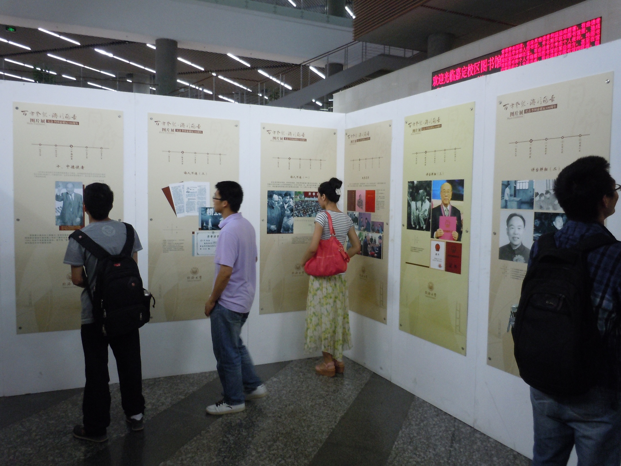 接下来,我们参观了嘉定校区图书馆的“纪念李国豪诞辰100周年”图片展,展览分为上下篇。上篇“济•忆”包括“客家少年”、“吴淞问学”、“风雨同舟”、“旅德生活”、“重返故园”、“逆境坎坷”、“掌校同济”等7个部分内容,下篇“国•豪”由“桥梁大师”、“教育功臣”、“中德使者”、“大智大爱”、“健康人生”等5个部分组成。