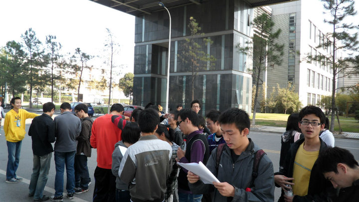 中午一点钟,5个小组的同学在嘉定校区仰望星空楼下集合,工作人员将任务书发到各组组长手中,拉开了嘉定校区党团干部素质拓展活动的序幕。据悉本次活动经过精心的选题和准备,任务书中的任务很有难度。很多题目需要拍照片或者录视频,与传统的到指定地点完成任务的素质拓展模式相比,有了重大的改变和突破。一些题目需要走访宿舍楼管或者饭店大厨,一些题目需要邀请路人合作,有的题目考验同学们的音乐水平,有的题目考察大家的观察能力,可谓全面的考验、全面的拓展、全面的提高。