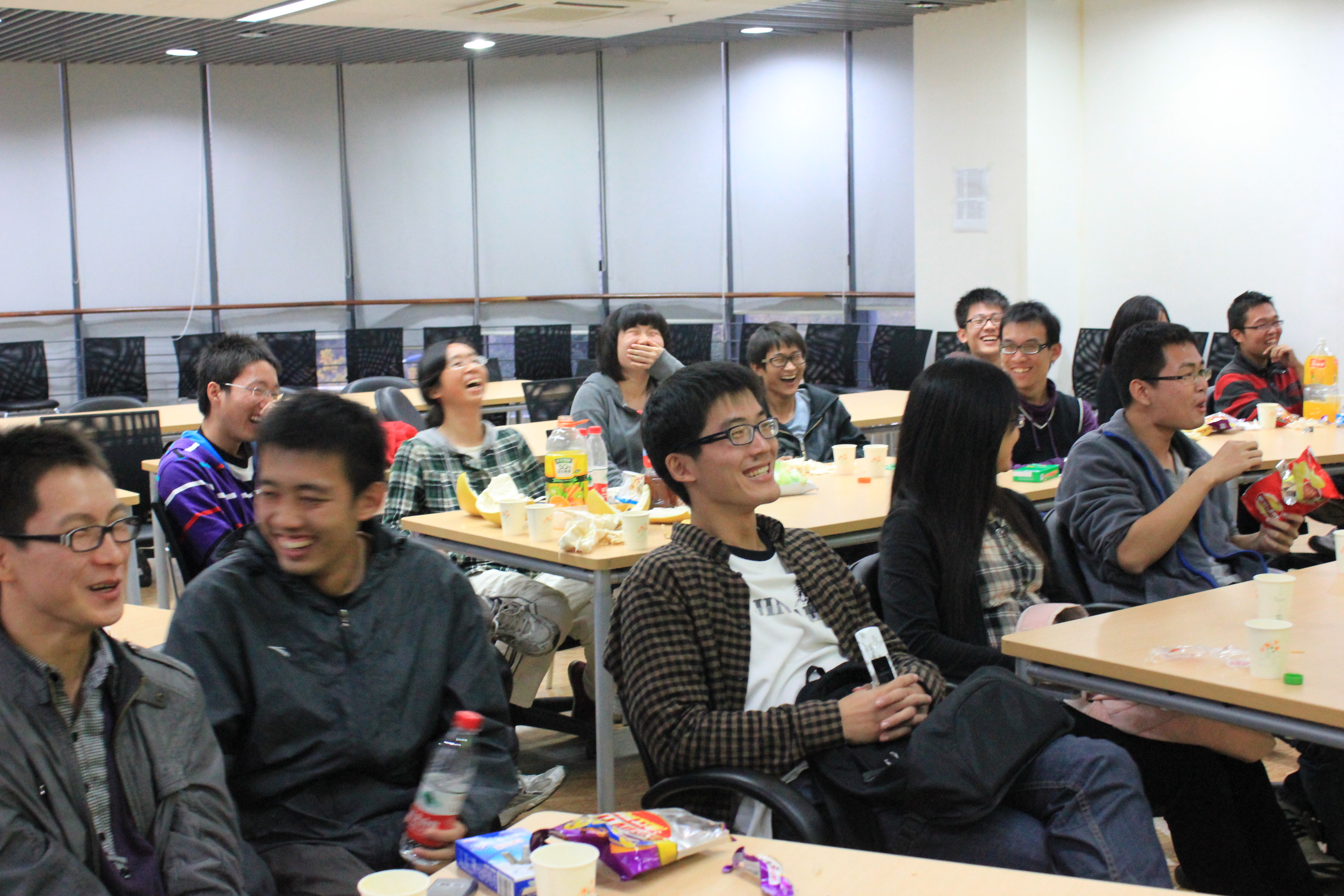 每个小组的同学完成任务后,到汽车学院A311休息,等待第二部分各组汇报成果。每个同学无不气喘吁吁、筋疲力尽,可见此次素质拓展的强度是很大的。在A311,工作人员早已买好了饮料水果零食来犒劳辛苦的同学们。同学们边享用美食,边交流素拓的感想、经验,现场气氛温馨和谐。