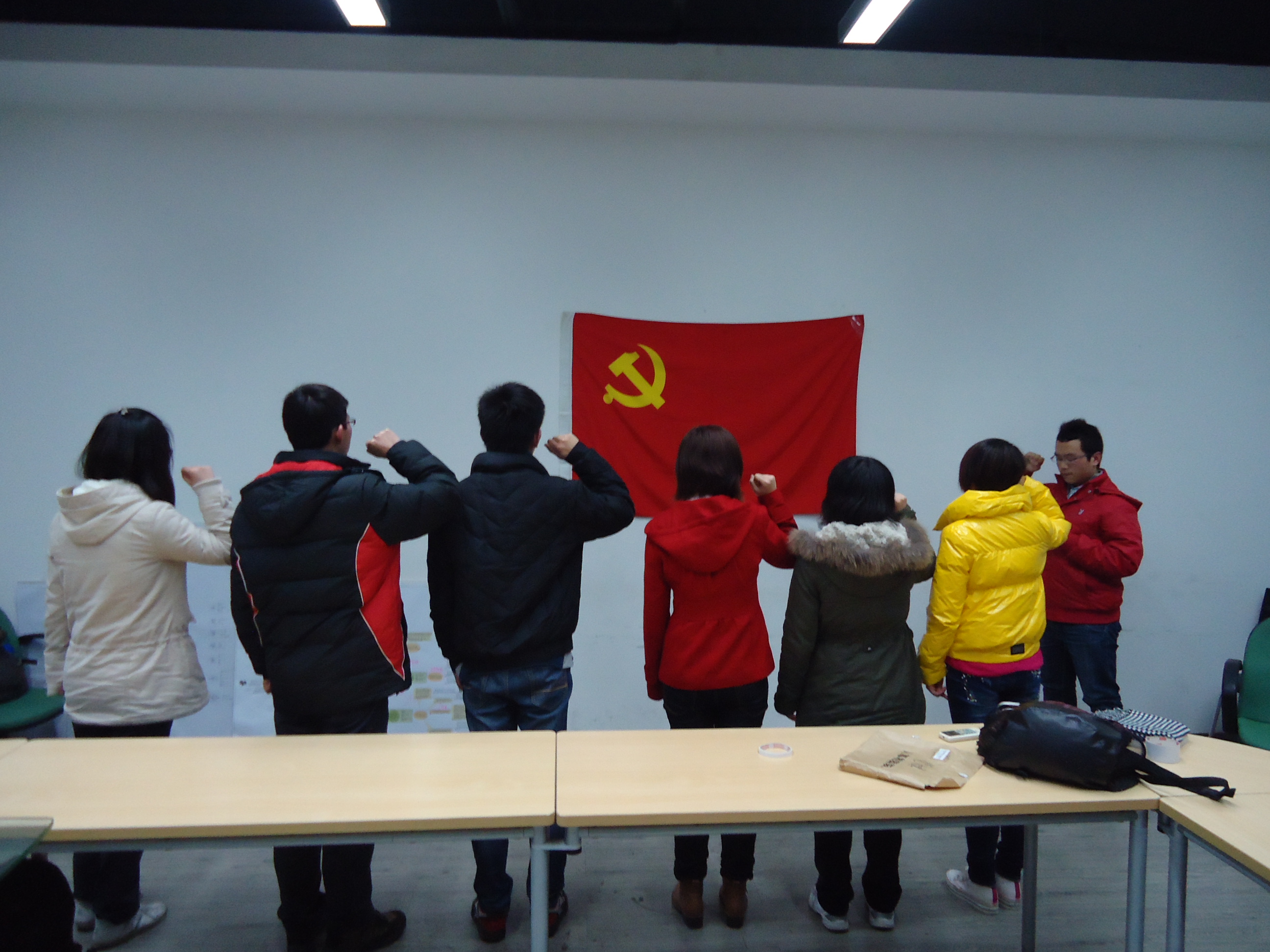 大会开始,六位新党员分别宣读了自己的入党志愿书,并汇报了自己的生平简历,尤其是对党组织的认识以及思想上的转变,阐述了自身的优缺点,以及今后的努力方向,之后各自的介绍人分别对每位新党员申请入党以来的表现做了总结,提出了不足之处。之后,葛畅老师对新党员给予了深切的期许,希望他们以后坚持以党员的标准严格要求自己。大会的最后,6名新党员面对着党旗,举起右手庄严宣誓。
